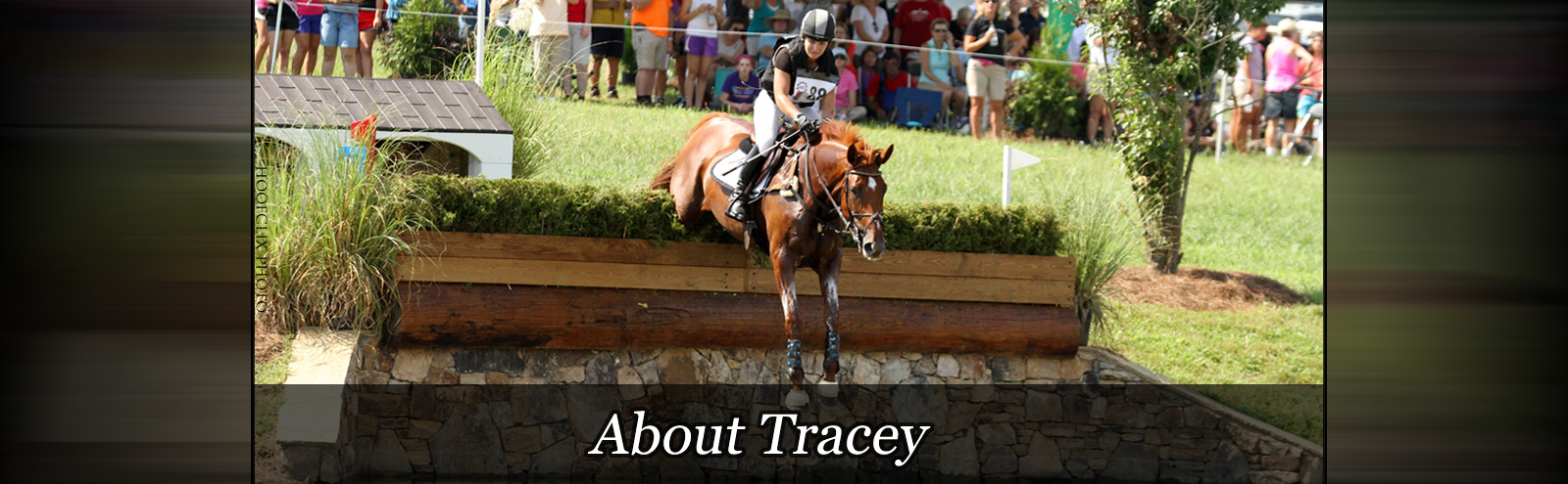 Tracey began recognized eventing in 2004, completing only one novice level horse trials before moving up to training level in 2005. By the end of Summer in 2005, Tracey and Paul's Legacy were successfully competing at the preliminary level, placing 4th at her first prelim at Fairhill, and 1st at her second prelim at the Marlborough horse trials. Her sucesses continued, including trips to USPC Championships and American Eventing Championships. In 2007, she hoped to compete for Area II at NAJYRC, and achieved long-list status and had entered her first CCI* at Morven Park, when Legacy suffered a career-ending injury. Through the past few years, Tracey had also been training a young horse she received as a weanling, Aces Zoomin' Dude. In 2007, at age 5, Zoomer successfully moved up to the preliminary level.